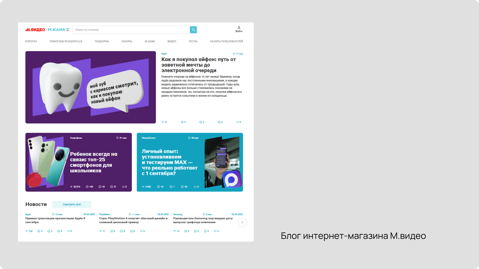 Подготовили полный цикл SEO-контента для блогов М. Видео и Эльдорадо в рамках тендера на создание редакторских материалов. Работали строго по техническому заданию: соблюдали объёмы, редполитику бренда и требования к вёрстке и подаче. Создавали тексты в разных форматах — от новостей до глубоко проработанных экспертных статей.