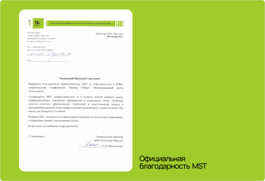 Проект показал, насколько быстро канал может трансформироваться при системном подходе к контенту и работе с аудиторией. За два года мы не просто увеличили количество подписчиков — мы кардинально изменили роль Telegram-площадки для «Сколково». Канал стал самостоятельным медиа с высокой вовлечённостью, подтверждённой верификацией и доверием профессионального сообщества. Сегодня это одна из ключевых точек контакта фонда с рынком технологий и предпринимателями, и она обеспечивает устойчивый рост без потери качества коммуникации